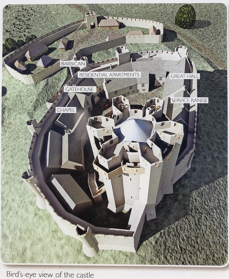 The ruins of the modern-day castle feature an inner and outer bailey as well as a prominent keep (tower)– consisting of 3 stories and there are magnificent views of the area from the roof.