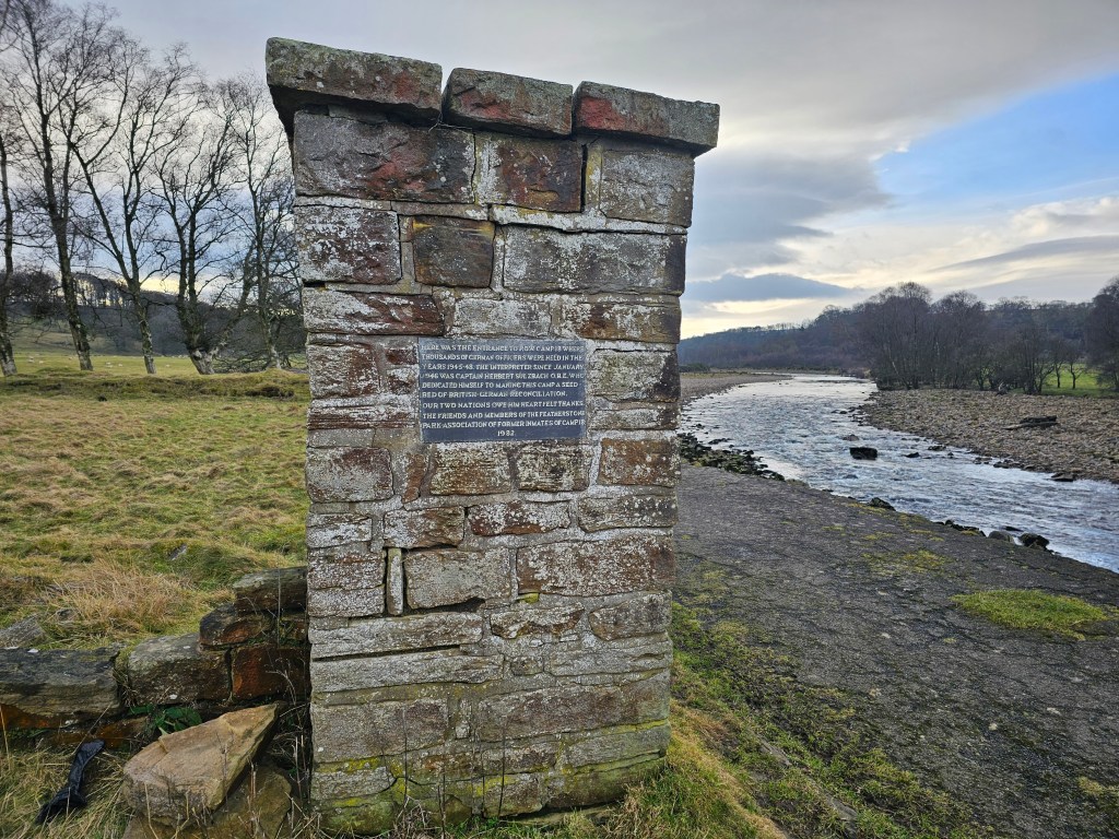 Following the South Tyne Trail along the river from Lambley Viaduct towards Featherstone, we came across the remnants of old buildings with only a plaque on what must have been the gatehouse identifying what it originally was: a Prisoner of War (POW camp) from World War 2.