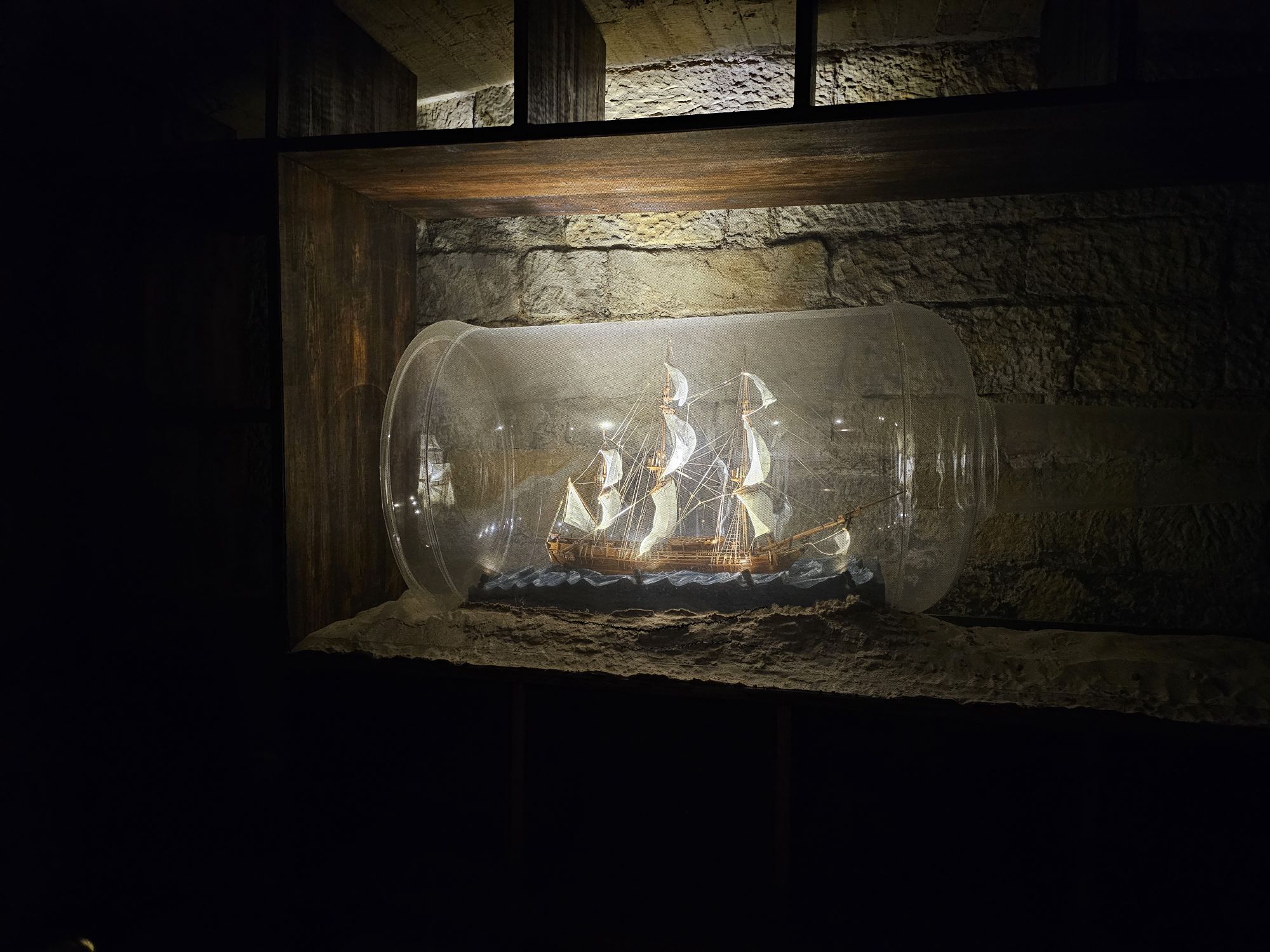 Ships in bottles and giant anchors in the basement.